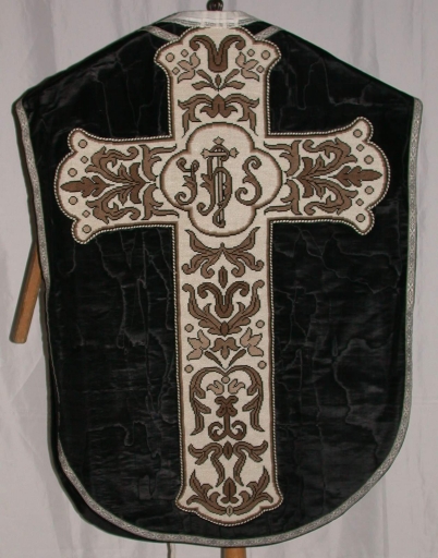 Ornement noir 5 : chasuble, bourse de corporal, étole, manipule, voile de calice,