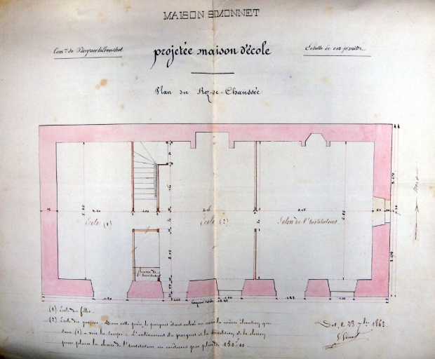 Plan de l'école, rez-de-chaussée,1863Immatriculation