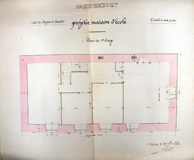 Plan de l'école, premier étage, 1863Immatriculation