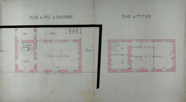 Second projet d'école, plans du rez-de-chaussée et du premier étage, 1878Immatriculation