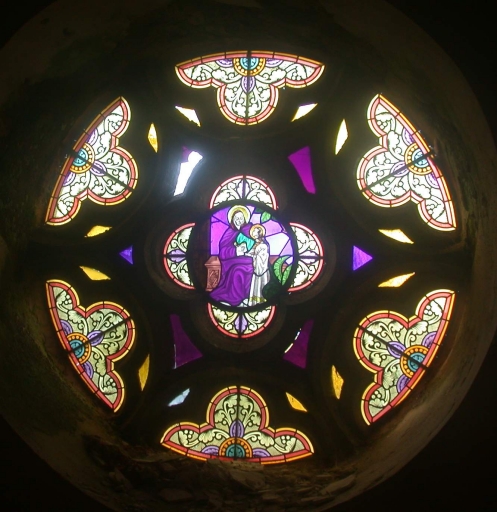 Verrière de la tribune (baie 00) : Education de la ViergeImmatriculation
