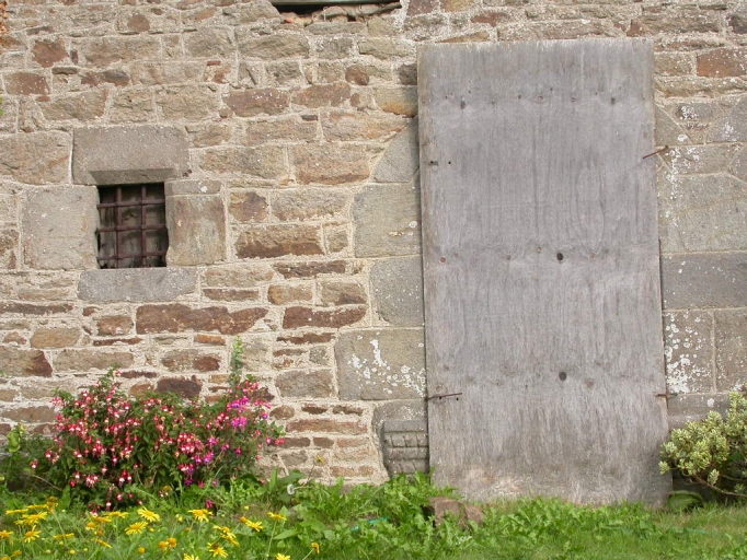 Elévation sud-est : détail de la porte à arc en plein cintre et de la baie grillée de la dépendanceImmatriculation