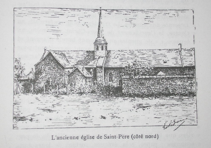 Dessin de Gustave Bénic d'après Robidou : élévation nord de l'ancienne égliseImmatriculation