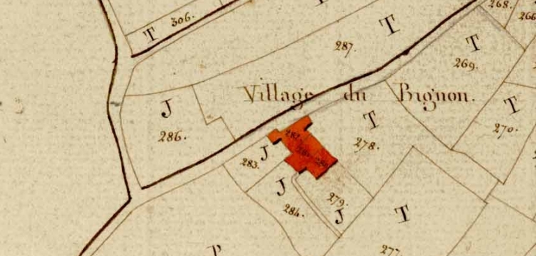 Partie nord-est de l'écart sur le cadastre de 1809Immatriculation