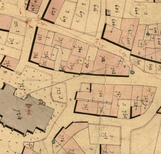 Extrait du cadastre de 1848, parcelles 742, 743Immatriculation