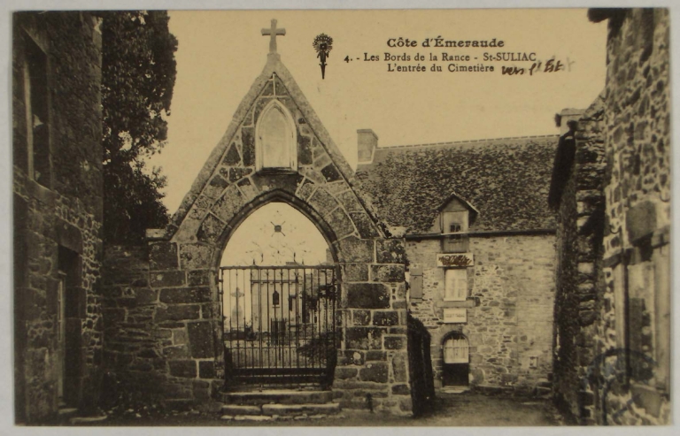 Enclos du cimetière, portail nord. (Carte postale ancienne, A.D.35 : 6Fi14)Immatriculation