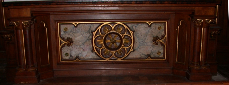 Ensemble de l'autel de la Vierge : autel, gradin d'autel, retable, degré d'autel, église Saint-Suliac (Saint-Suliac),