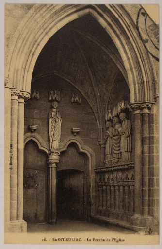 16 Saint-Suliac (I.-et-V.). - Le Porche de l'Eglise. Carte postale, Dinan : J. Rouxel éditeur, [s. d.].