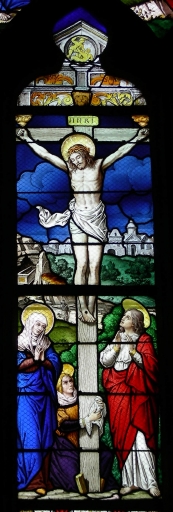 Baie 4 : Sacré-coeur ; Baie 5 : La Crucifixion, le Christ au jardin des Oliviers, église paroissiale Saint-Martin (Javené),
