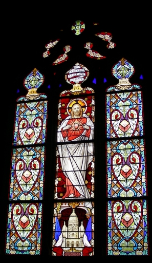 Baie 4 : Sacré-coeur ; Baie 5 : La Crucifixion, le Christ au jardin des Oliviers, église paroissiale Saint-Martin (Javené),
