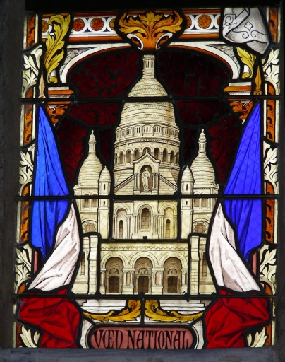 Baie 4 : Sacré-coeur ; Baie 5 : La Crucifixion, le Christ au jardin des Oliviers, église paroissiale Saint-Martin (Javené),