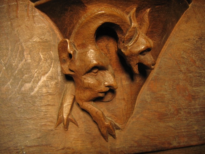 Miséricorde : détails des deux têtes du monstreImmatriculation