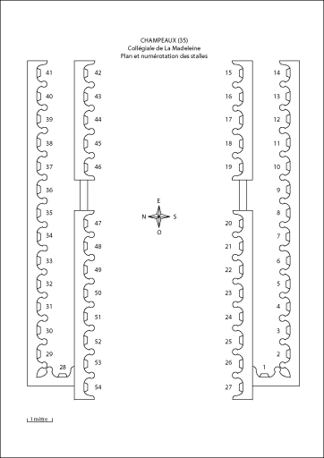 Ensemble de stalles dans la collégiale Sainte-Marie-Madeleine (contre les murs nord et sud du choeur),