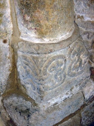 Base de la colonne centrale recevant la retombée des deux arcades romanes mises au jourImmatriculation