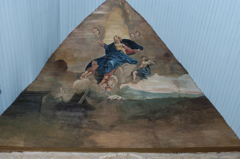 Ensemble de deux lambris de couvrement peints : L'Ascension du Christ ; L' Assomption de la Vierge,