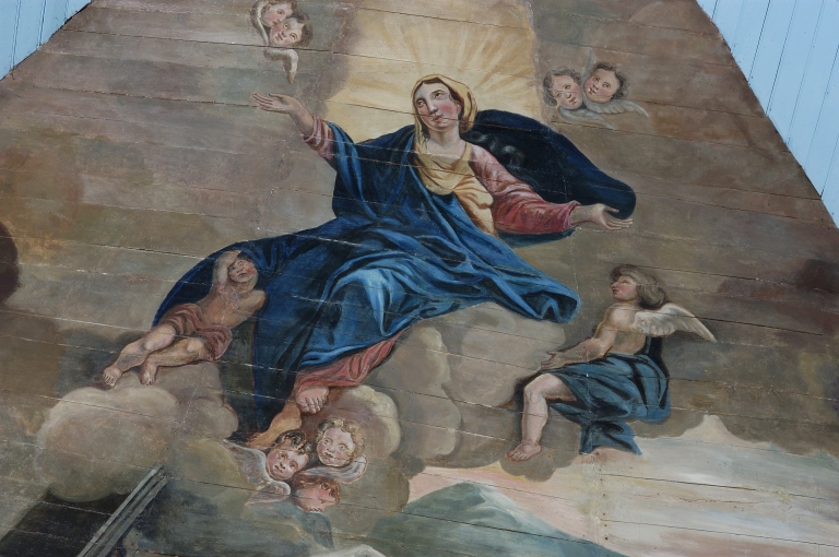 Ensemble de deux lambris de couvrement peints : L'Ascension du Christ ; L' Assomption de la Vierge,