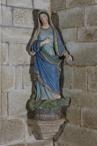 Ensemble de 4 statues sur socle : Vierge à l'Enfant ; Saint Joseph ; Sainte Trinité (?) ; Sainte Marguerite,