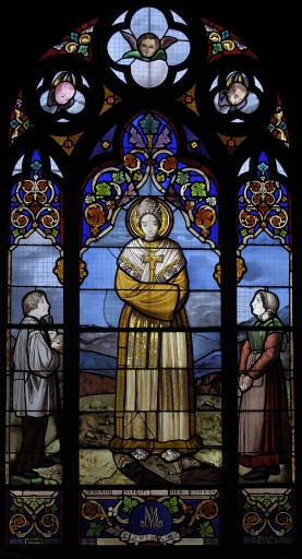 Ensemble de 9 verrières figurées : Sainte Hélène ; Saint Yves ; Immaculée conception ; Sacré-Coeur ; Saint Jean-Baptiste ; Notre-Dame de la Salette ; Saint Mathurin ; Saint Pierre ; Saint Joseph,