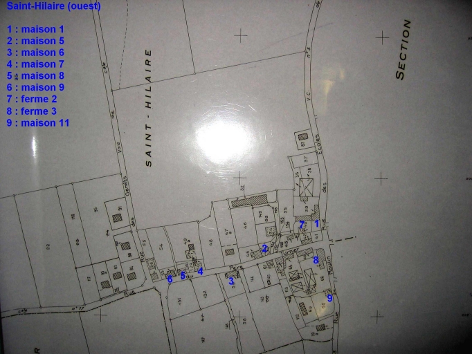 Saint-Hilaire, partie ouest. Plan de localisation des oeuvres étudiées et repérées. Plan cadastral 1987, section XVImmatriculation