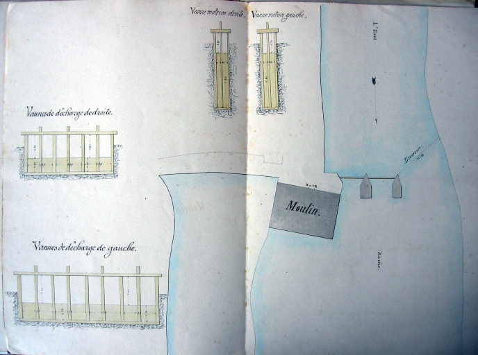 Règlement d'eau du moulin du Cosquéro. Plan, 5 mai 1858 (AD 56, S 1119)Immatriculation
