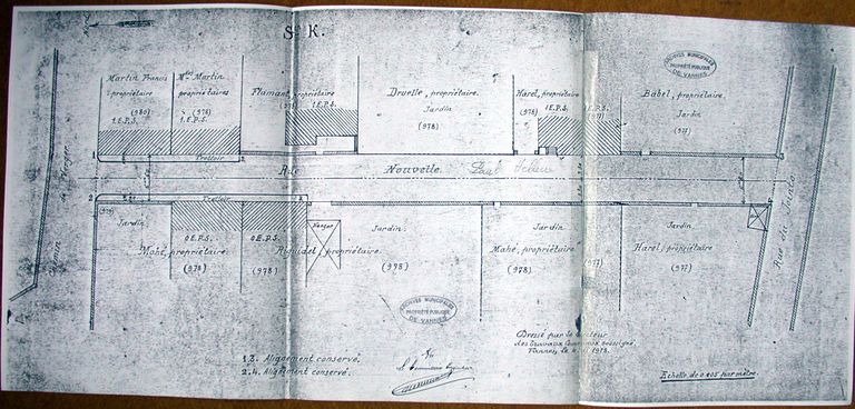 Plan d'alignement de la partie nord de la rue, 4 mai 1928. AD Morbihan 3O 2182.Immatriculation