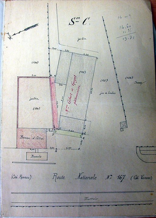 Plan au sol de l'octroi et de la maison des Gilbert et Guyot dressé le 12 février 1926. AM Vannes 1M197.Immatriculation