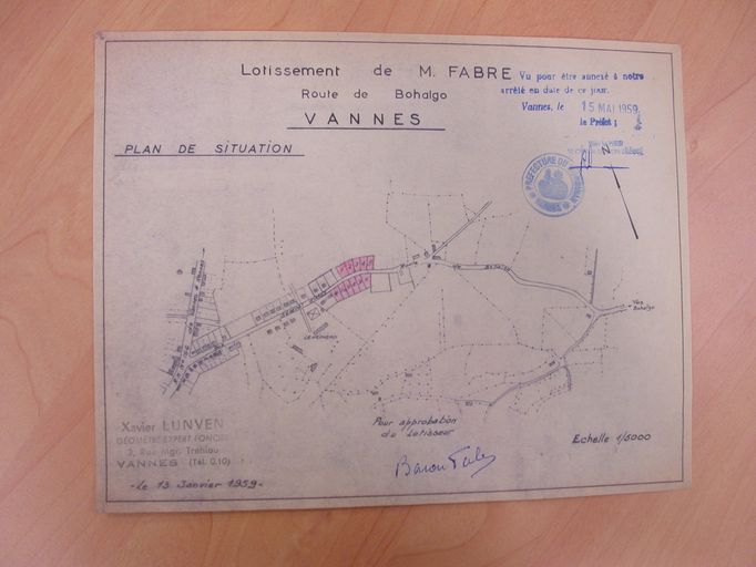 Plan de situation du lotissement Fabre, 1959 et 1965. AM Vannes 1O221.Immatriculation
