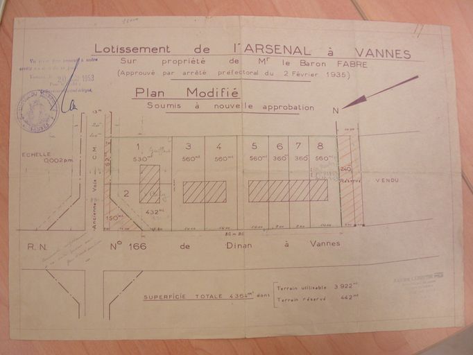 Plan modifié du lotissement de l'arsenal, 1953. AM Vannes 1O221.Immatriculation