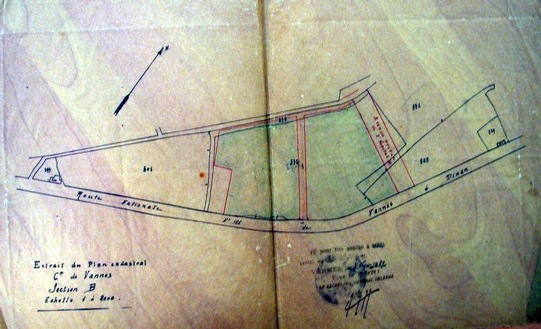 Extrait du plan cadastral pour le lotissement Lorcy. AM Vannes 1O221.Immatriculation