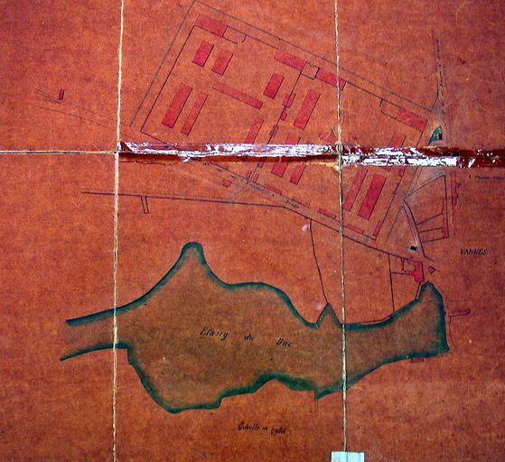 Plan de situation des premiers bureaux d'octroi route de Rennes et de Nantes figurés en noir. AM Vannes 1M197.Immatriculation