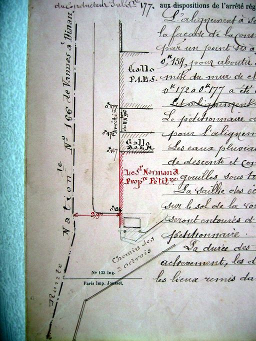 Demande d'alignement pour la construction d'une maison pour M. Normand, août 1897. AD Morbihan S 257.Immatriculation