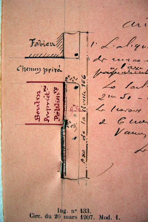 Demande d'alignement pour la construction d'une maison pour M. Boutin, 23 octobre 1908. AD Morbihan S 257.Immatriculation