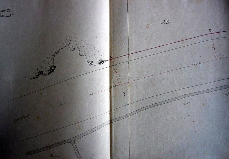 Suite du plan des abords du Rocher plat dressé sur une demande d'alignement faite par le sieur Prado, fermier le 3 juillet 1839. AD Morbihan S257.Immatriculation