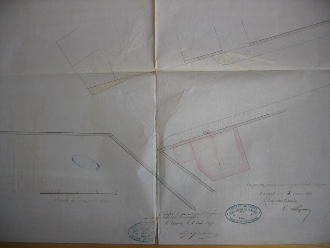 Demande d'autorisation de Mr Lallement pour établir deux marches devant le bureau d'octroi anciennement situé à l'angle du chemin de Bohalgo, 13 avril 1853. AD Morbihan S257.Immatriculation