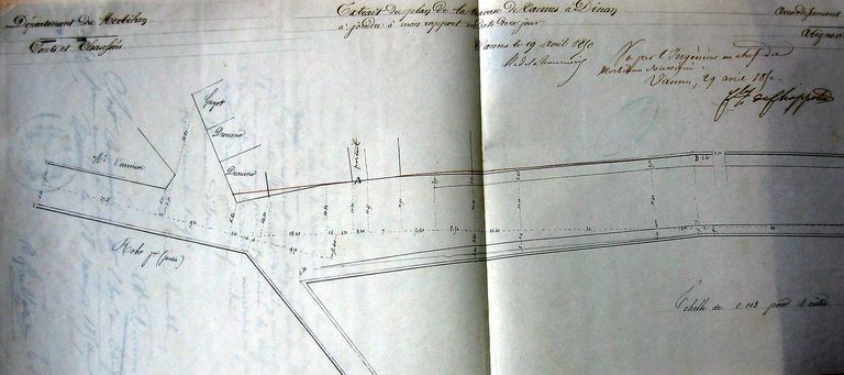 Plan dressé pour une demande d'alignement de C. Drouino pour élever une construction sur son terrain le 17 Mars 1850. AD Morbihan S257.Immatriculation