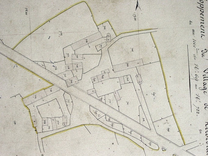Plan cadastral de 1845, section F. Le bâtiment n°716 est l'ancienne chapelle détruite vers 1850.Immatriculation