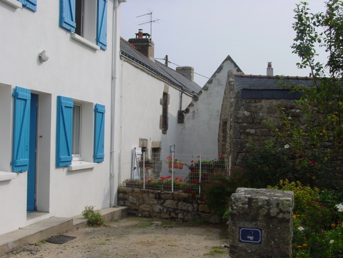 Ferme n°2 : vue sud-ouest de l'étable (AB 169) et pignon ouest de la dépendance accolée au logis principal (AB 168).Immatriculation