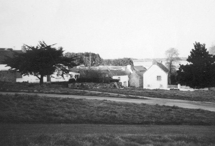 Kerhuen en 1976, vue vers le nord-est et le chemin menant à la pointe du Perche. A l'arrière plan, le bois de l'île de Riec'h.Immatriculation