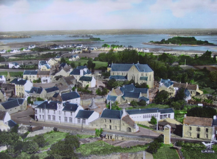 Vue aérienne vers 1958-1960. On distingue sur la façade sud de la mairie écolel'emplacement des 3 salles de classe.Immatriculation