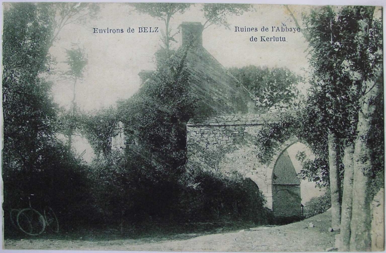 Kerlutu nommé parfois Abbaye de Kerlutu en raison de ses propriétaires, la famille de Rosmadec dont deux membres furent évêques au 17e s. Carte postale vers 1920.Immatriculation