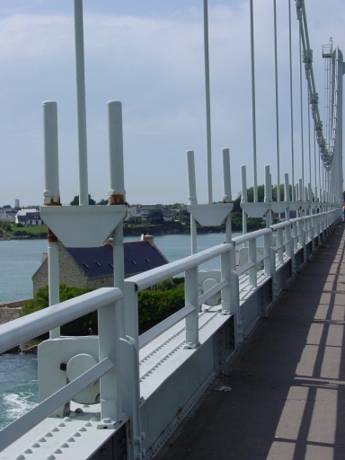 Détail du tablier métallique et ancrage des câbles de suspension.Immatriculation