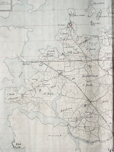 Plan général ou tableau d'assemblage du plan cadastral de 1845. Détail partie ouest.Immatriculation