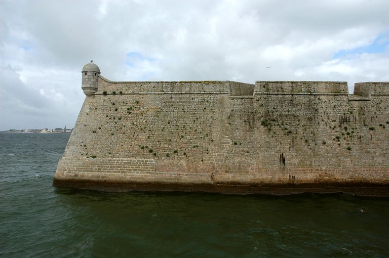Vue de la citadelle de Port-Louis : embrasures plongeantes et échauguette du bastion de GroixImmatriculation