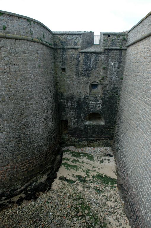 Vue de la citadelle de Port-Louis : embrasures sud protégées par l'orillon du bastion de Groix et flanquant la porte du corps de placeImmatriculation