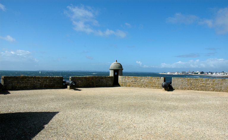 Vue de la citadelle de Port-Louis : embrasures plongeantes et échauguette du bastion des ChambresImmatriculation