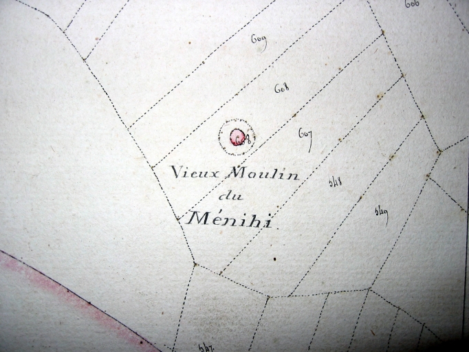Moulin à vent du Ménihi. Extrait du cadastre ancien de 1810, section F2 (A.D. 56, série 3P)Immatriculation