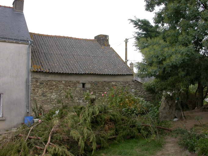 Kerdro, ferme repérée : logis à pièce unique surmonté d'un comble à surcroît, 17e siècle, vue générale sud. ZI 43Immatriculation