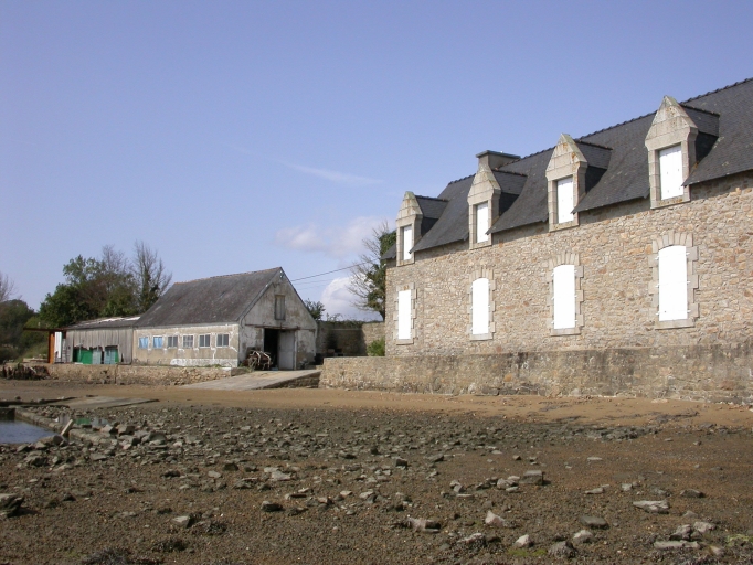 Pointe de Kerdoret, bâtiment d'exploitation, parcs à huîtres et maison d'ostréiculteur, début 20e siècle, vue générale sud-est. ZC 43, domaine public maritimeImmatriculation