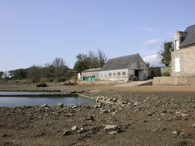 Pointe de Kerdoret, bâtiment d'exploitation et parcs à huîtres, vue générale sud-est. ZC domaine public maritimeImmatriculation