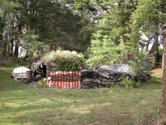 Pointe de Pen Inez, ancien chantier ostréicole repéré : hangar en ruines, vue générale sud. XA 160aImmatriculation